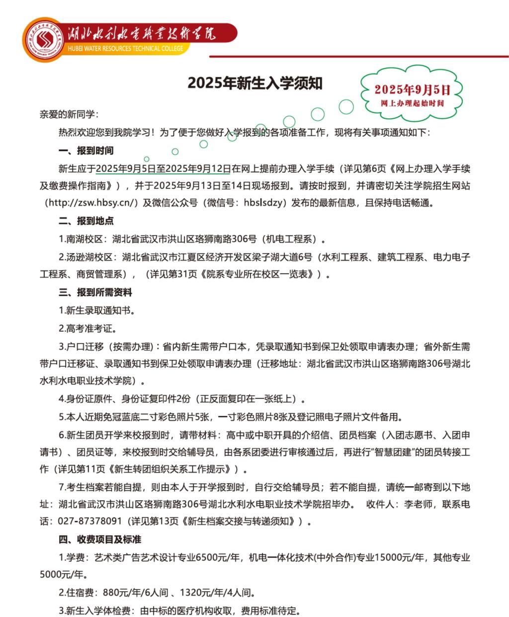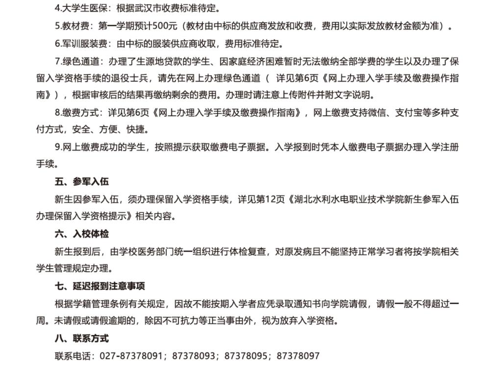湖北水利水电职业技术学院2025年新生入学须知