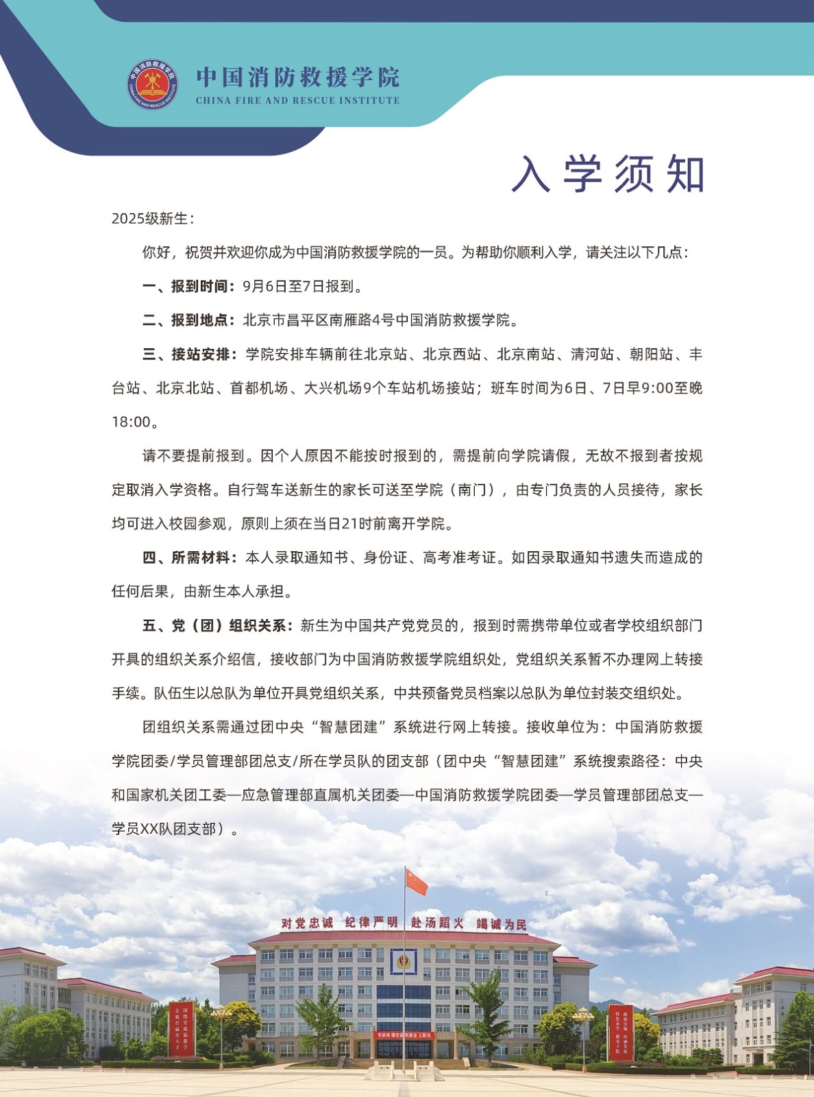 中国消防救援学院2025年新生入学须知