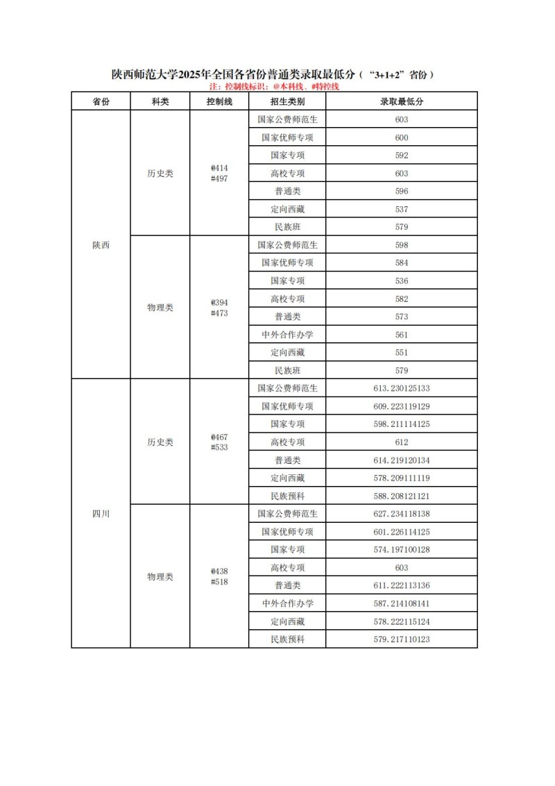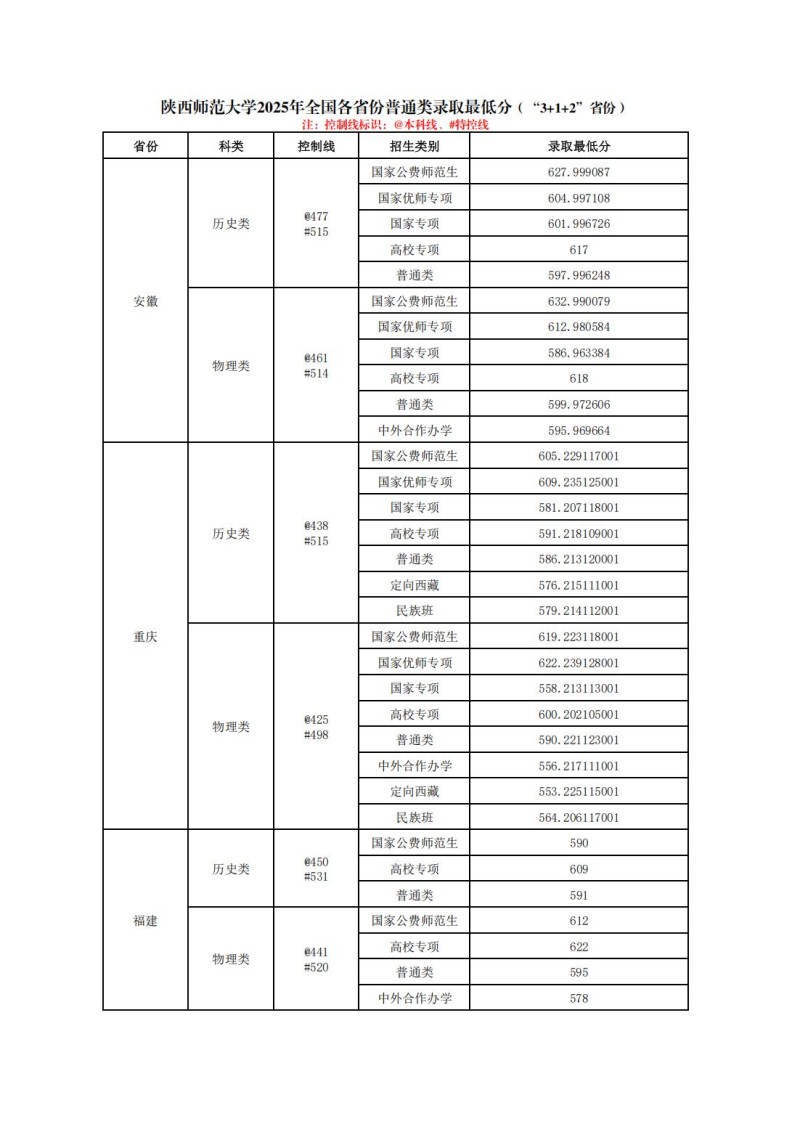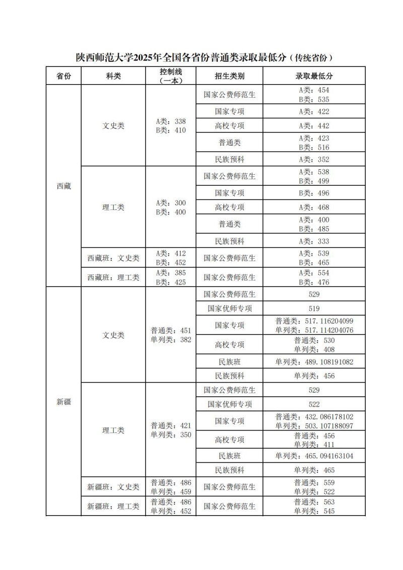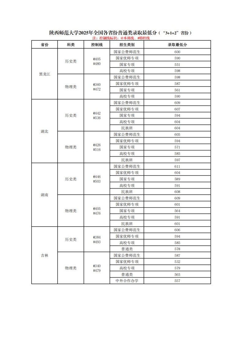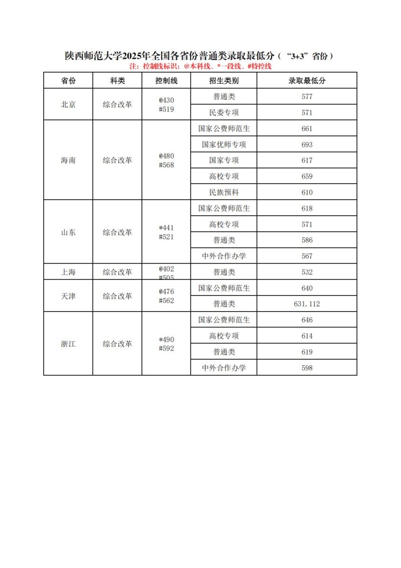 2025年普通类本科专业各招生省(市)录取最低分数线