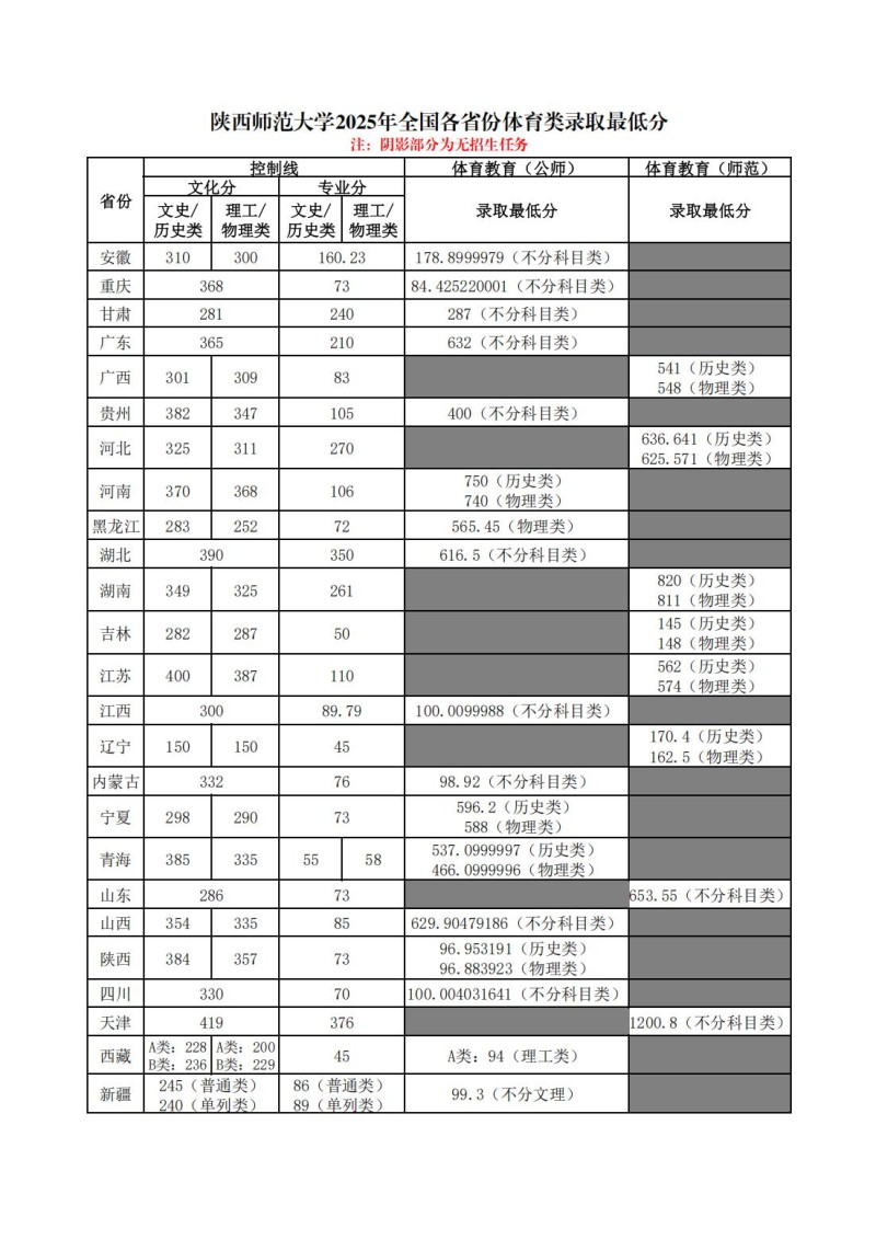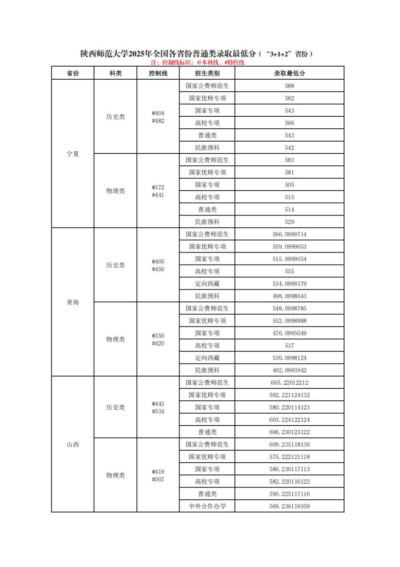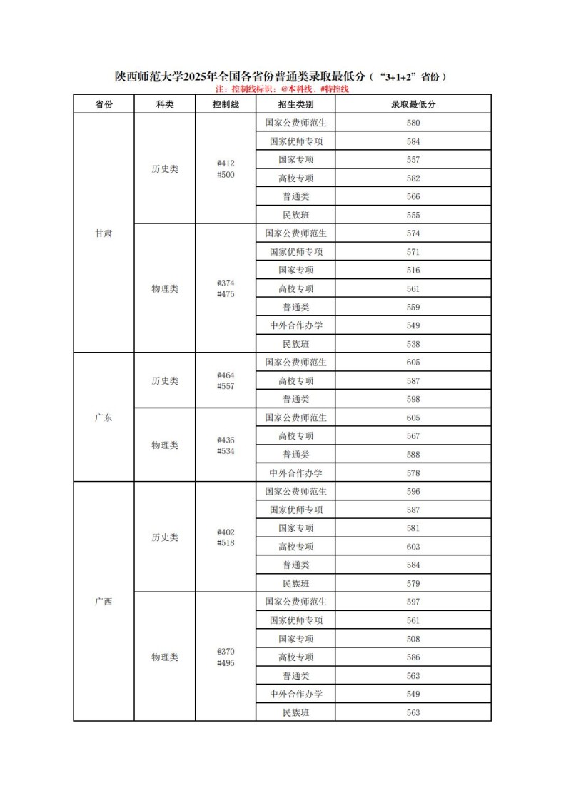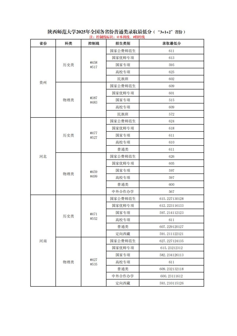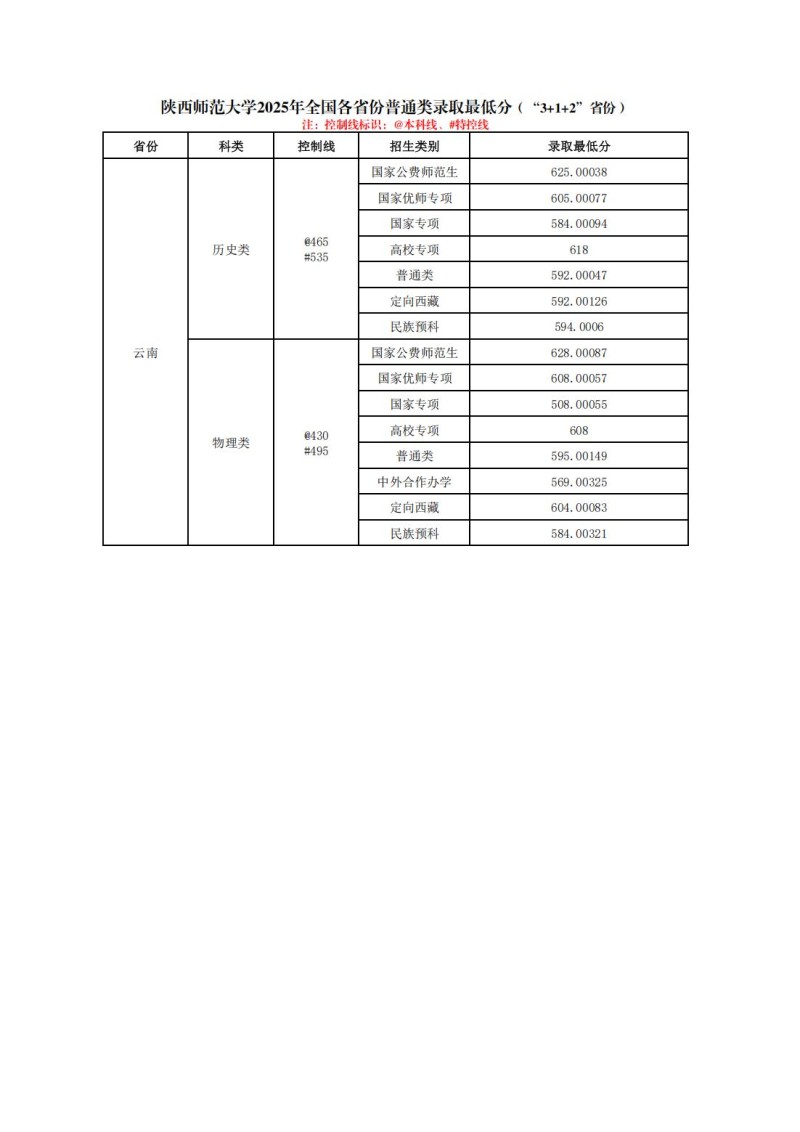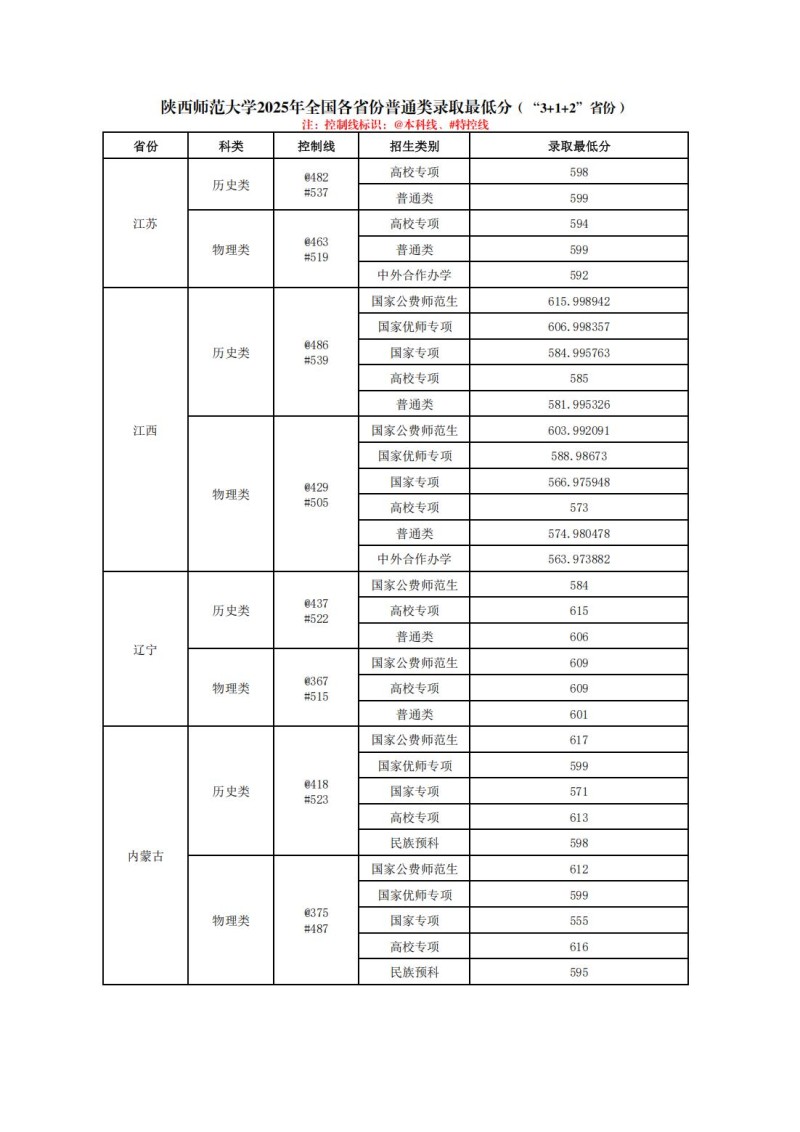 2025年普通类本科专业各招生省(市)录取最低分数线