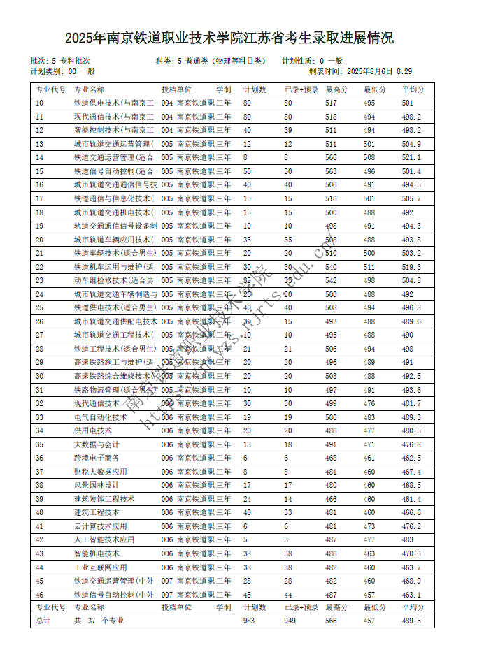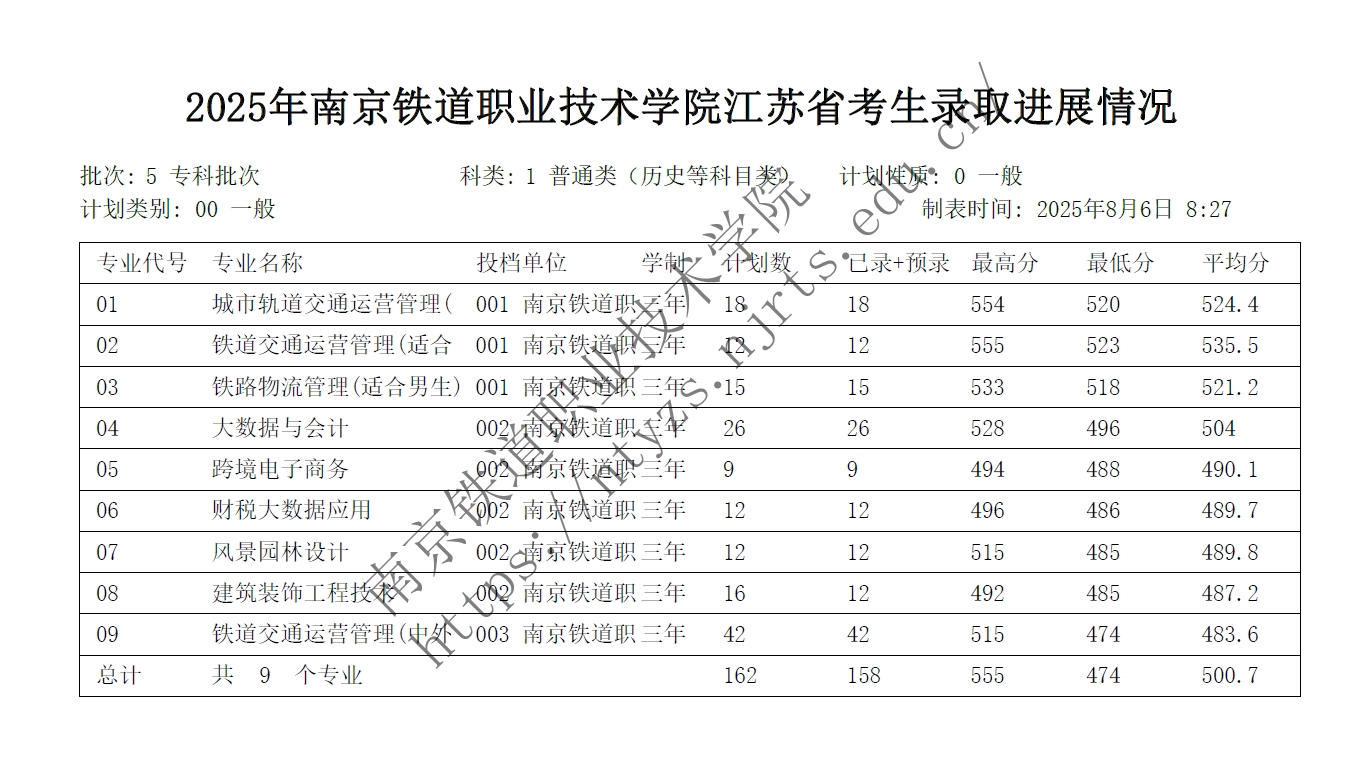 表格内容所示为普通类平行志愿投档各专业录取情况。因身体条件、不服从调剂退档导致未录满专业于征求志愿阶段完成,征求志愿投档线见江苏省教育考试院网站。