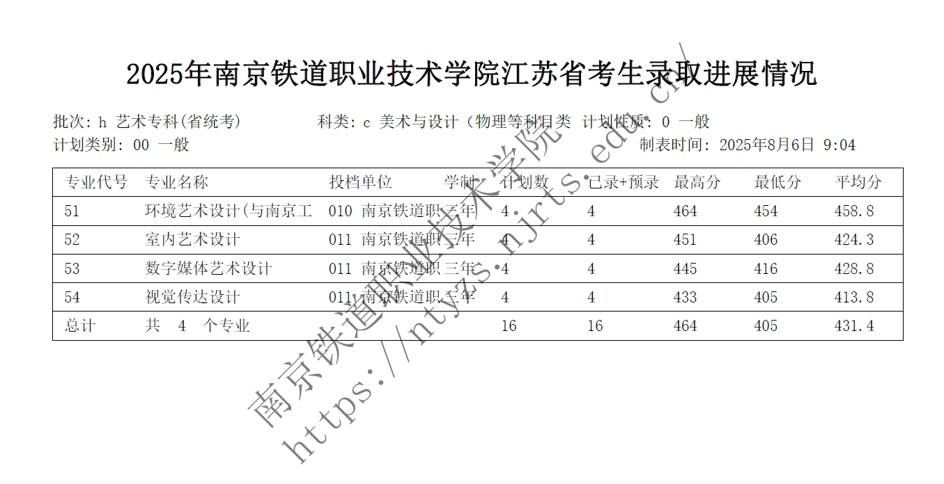 表格内容所示为艺术类各专业录取情况。因身体条件、不服从调剂退档导致未录满专业已于艺术类征求志愿阶段完成,征求志愿投档线见江苏省教育考试院网站。