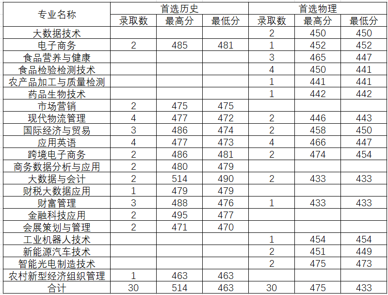 【安徽】2025年份专业录取情况一览表