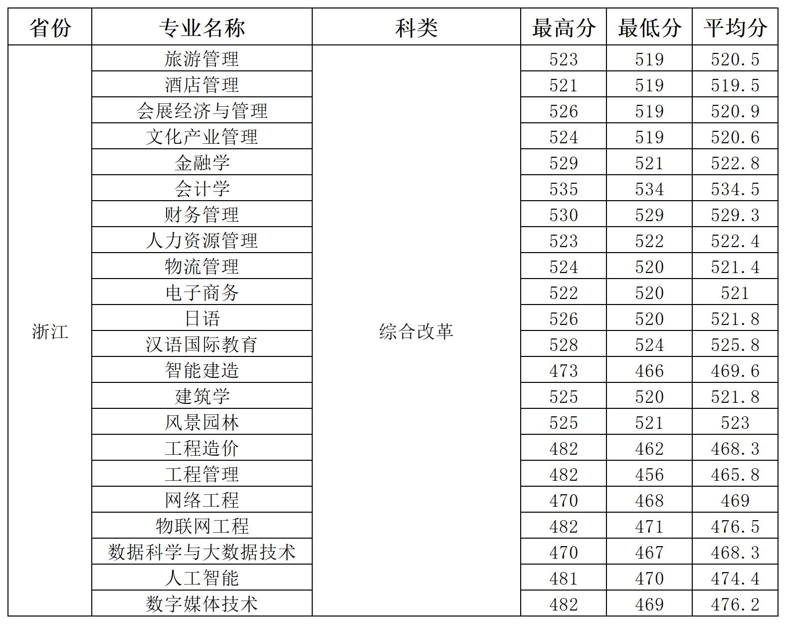 截止2024年7月30日15:00,我校在浙江普通类录取圆满结束。录取分数情况如下: