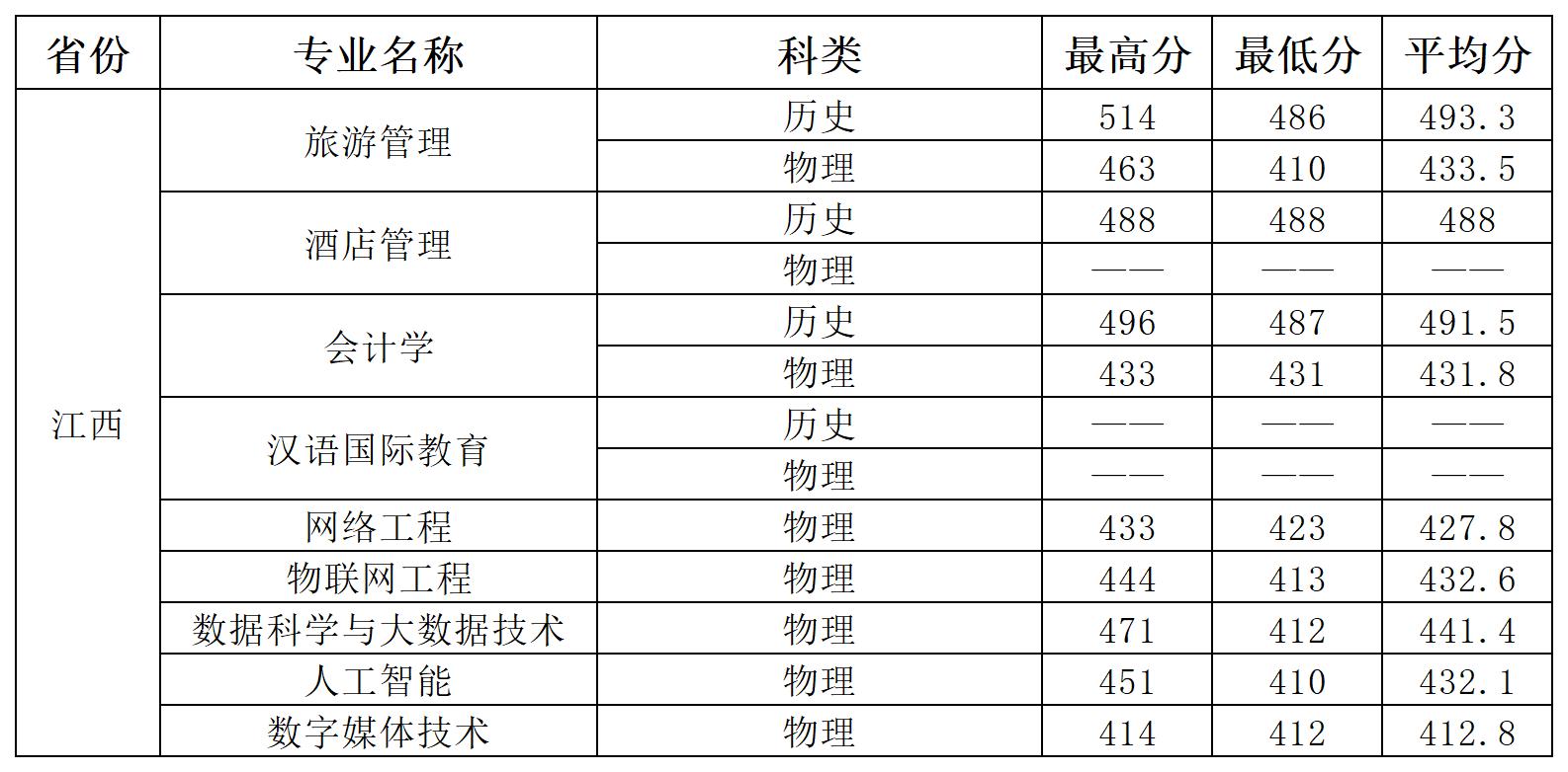 截止2024年7月29日13:00,我校在江西普通类录取圆满结束。录取分数情况如下: