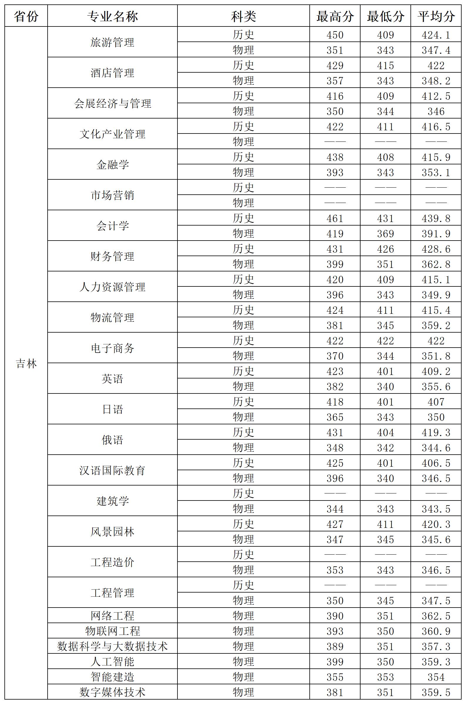 截止2024年7月21日12:00,我校在吉林省普通类录取圆满结束。录取分数情况如下: