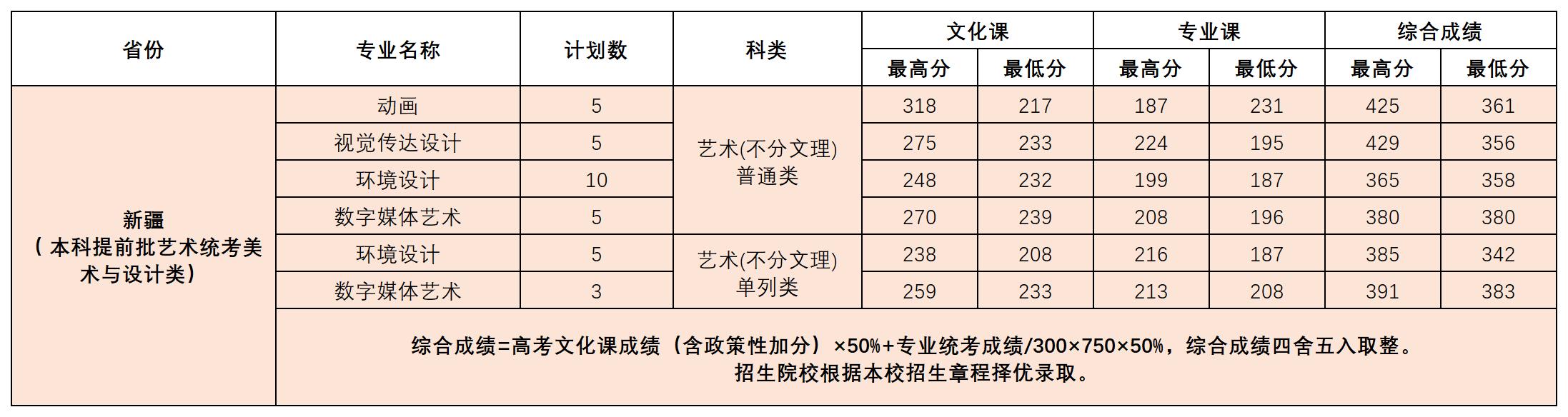 截止2024年7月21日12:00,我校在新疆艺术类录取圆满结束。录取分数情况如下:
