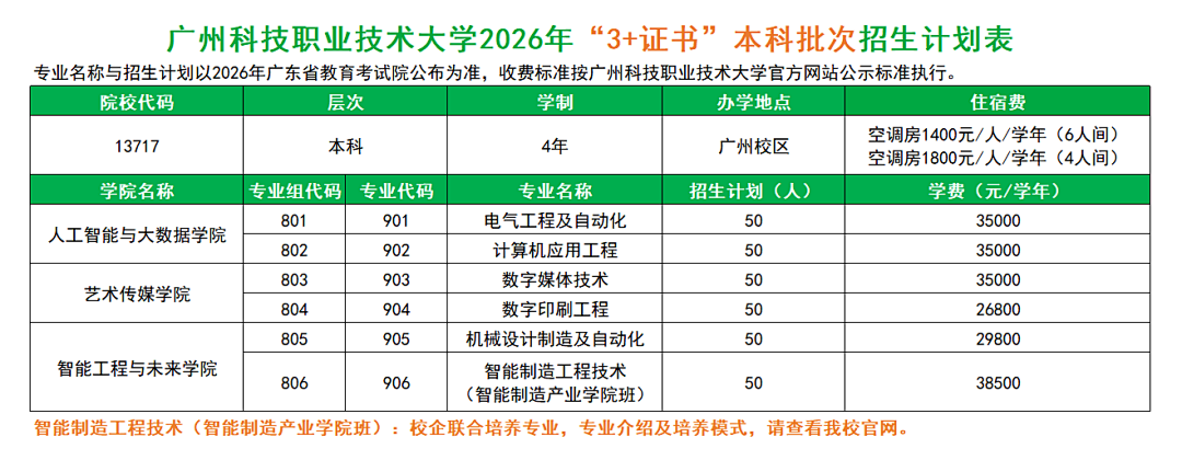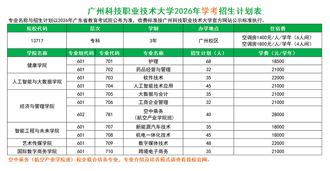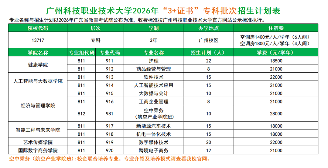 2026年,广州科技职业技术大学春季高考招生计划共900人,其中,“3+证书”本科招生计划300人,“3+证书”专科招生计划150人,学考招生计划450人。