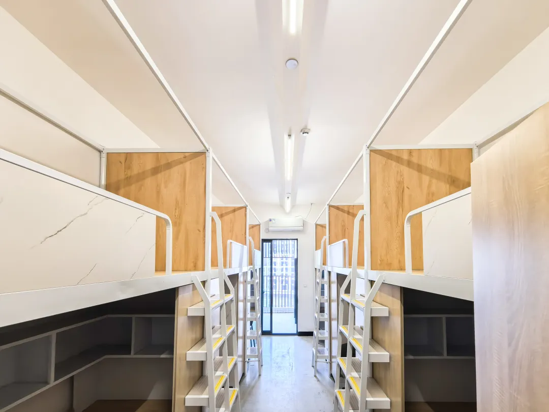 学生宿舍有四人间和六人间,均配有空调、洗衣机、独立卫生间、淋浴室等,配套设备齐全,酒店式IC门锁,刷卡一键解锁属于你的温馨空间。