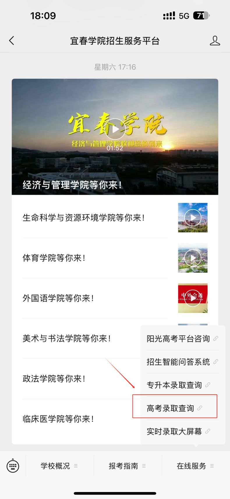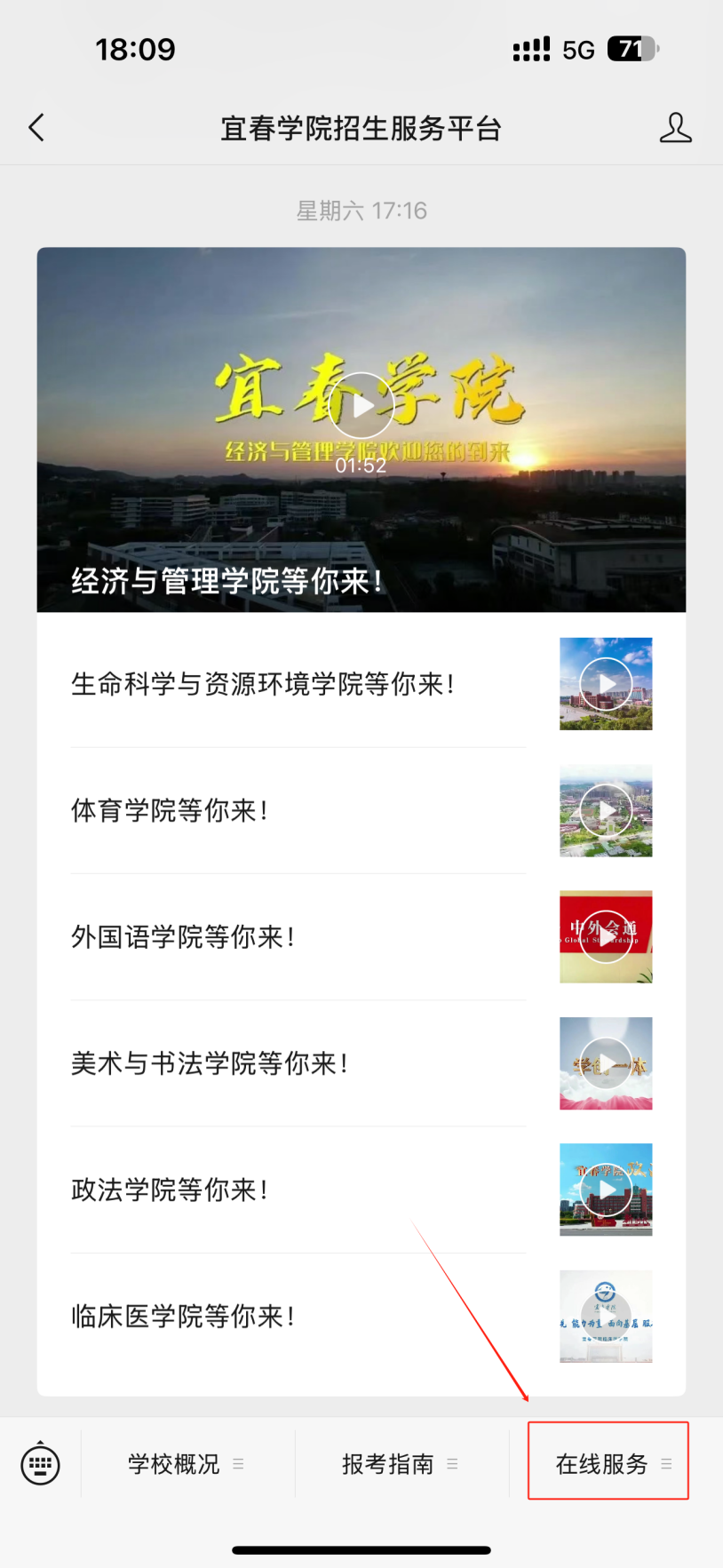 首先请关注“宜春学院招生服务平台”微信公众号,