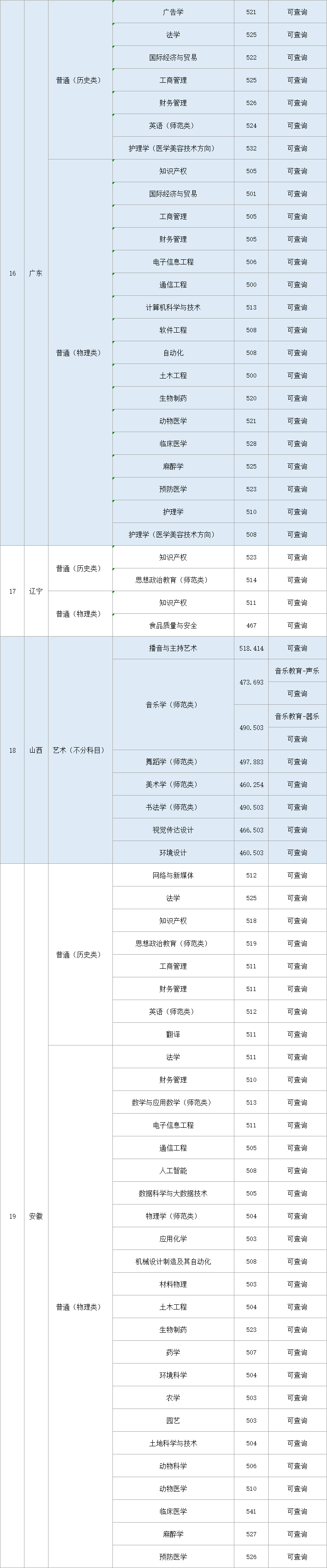 7月20日至7月28日,我校完成了福建普通类、湖南普通类、湖南体育类、河南普通类、贵州普通类、湖北普通类、海南普通类、广西普通类、内蒙古普通类、甘肃普通类、江苏普通类、河北普通类、重庆普通类、山东普通类、云南普通类、江西普通类、江西体育类、江西艺术类、浙江普通类、广东普通类、辽宁普通类、山西艺术类、安徽普通类的录取工作,具体录取情况如下: