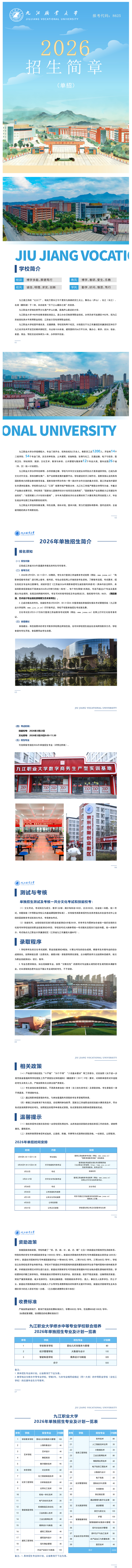 2026年九江职业大学单独招生简章