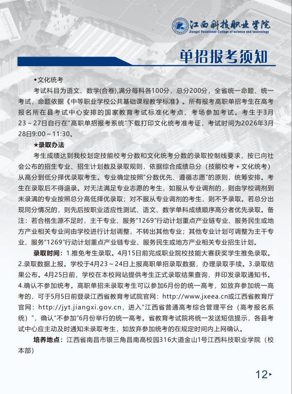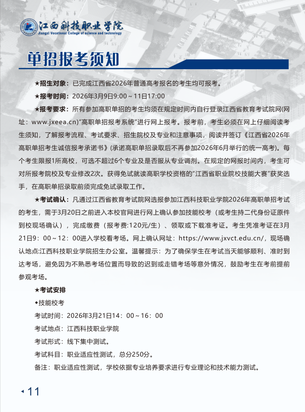 2026年江西科技职业学院单招简章