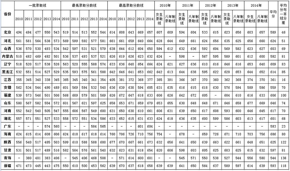 2010-2014年第四军医大学招生分数线