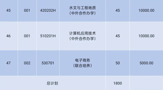 1.“水文与工程地质(中外合作办学)”、“计算机应用技术(中外合作办学)”专业为中外合作办学模式,(学费10000元/年),学制三年。仅录取填报了上述专业志愿的考生。