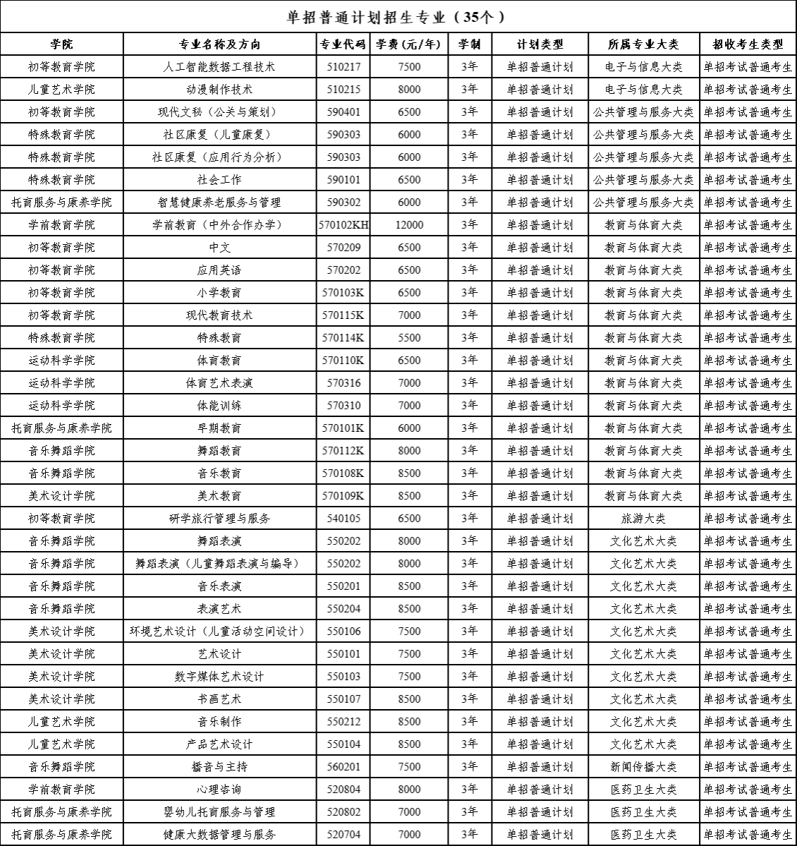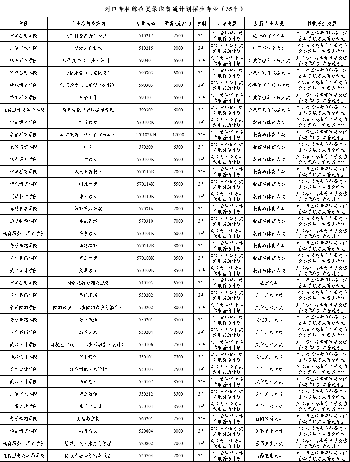 第十三条 根据教育部、卫生健康委员会、残疾人联合会共同颁布的《普通高等学校招生体检工作指导意见》,学前教育、体育教育、特殊教育及美术设计类专业不录取色弱、色盲考生。根据学校人才培养及专业发展要求,报考舞蹈表演、舞蹈表演(儿童舞蹈表演与编导)专业的考生身高不低于158cm。