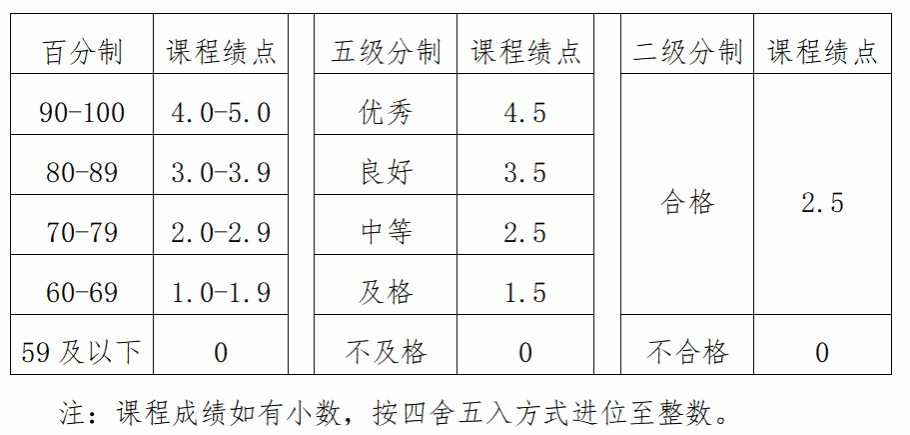 其中,课程学分绩点=某门课程绩点×该门课程学分。补考、重修以及未在课程绩点换算范围的成绩不列入成绩排名统计。平均学分绩点成绩取小数点后两位。