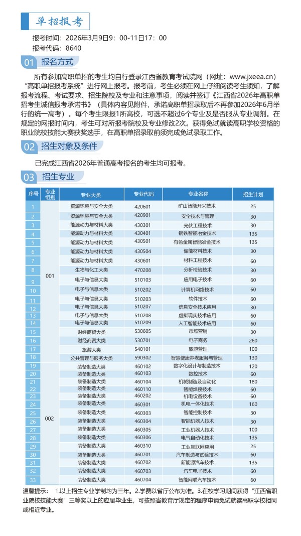 江西冶金职业技术学院2026年高职单招简章