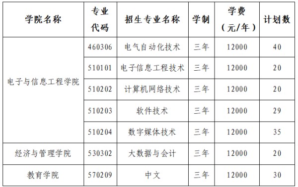 学校设置马克思主义学院、教育学院、电子与信息工程学院、经济与管理学院、艺术与体育学院5个二级学院,现有在校生12900余人。开设思想政治教育、汉语言文学、电子信息工程等33个本科专业及部分专科专业。建有省一流本科专业建设点1个,省一流课程4门,教育部高等学校教学指导委员会课程标准2门。