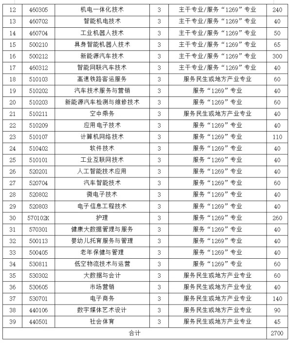 学校2026年单独招生的专业有39个,单招总计划数2700人。具体如下表: