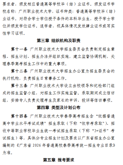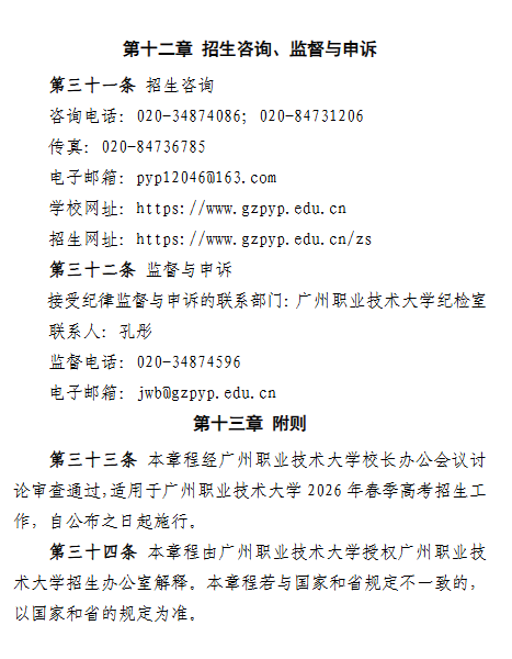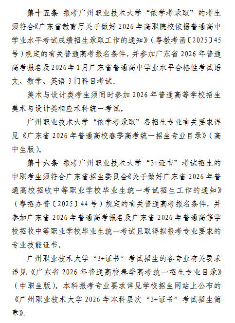 广州职业技术大学2026年春季高考招生简章