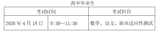 1、高中毕业生:考试方式为笔试。数学100分、语文100分、职业适应性测试200分,总分400分。