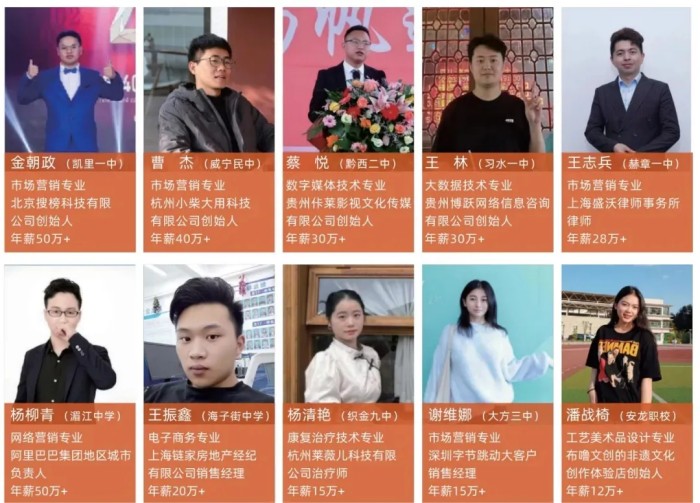 就业好去向:在北京、上海、广州、深圳、杭州、贵阳等中心城市找到一份好工作,保障学生实习与就业的较高收入,同时还与贵州百鸟河数字小镇配套教学、实习和部分就业。