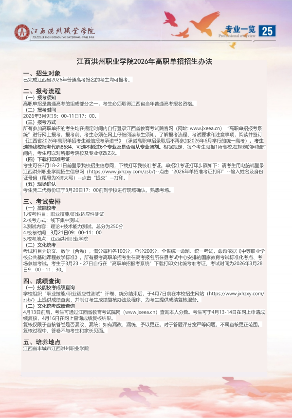 江西洪州职业学院2026高职单招简章