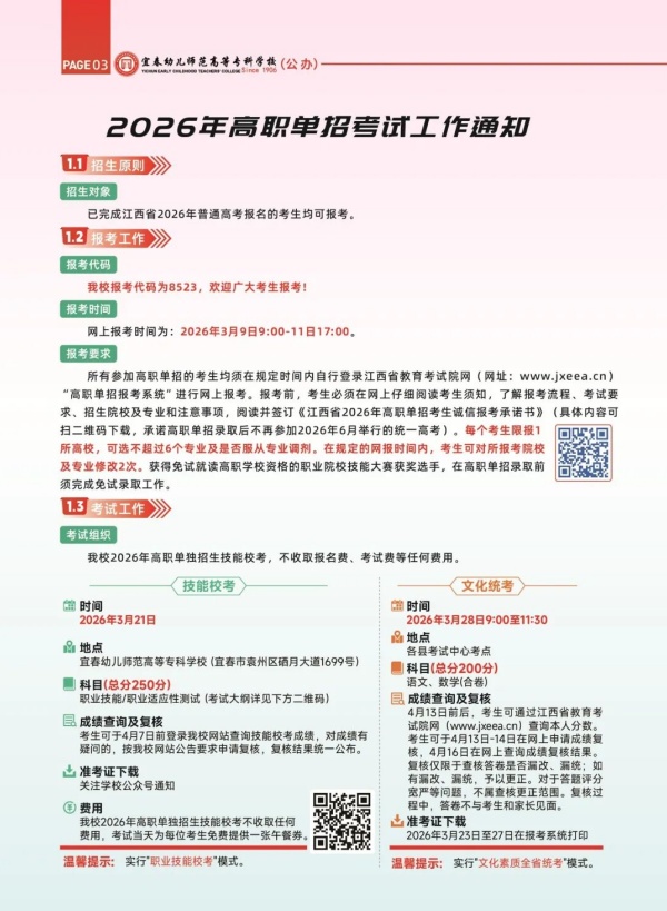 宜春幼儿师范高等专科学校2026年单招简章