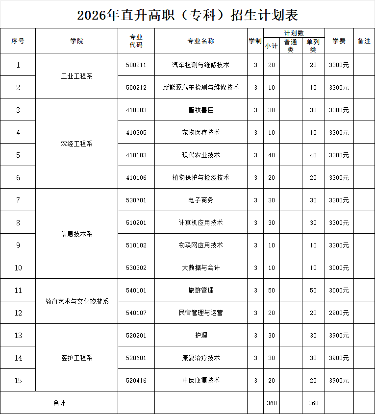 招生计划及收费标准