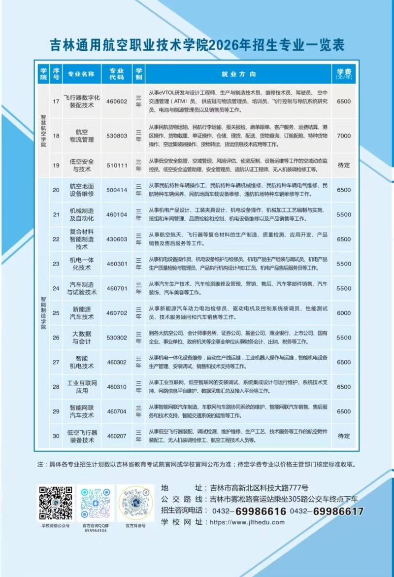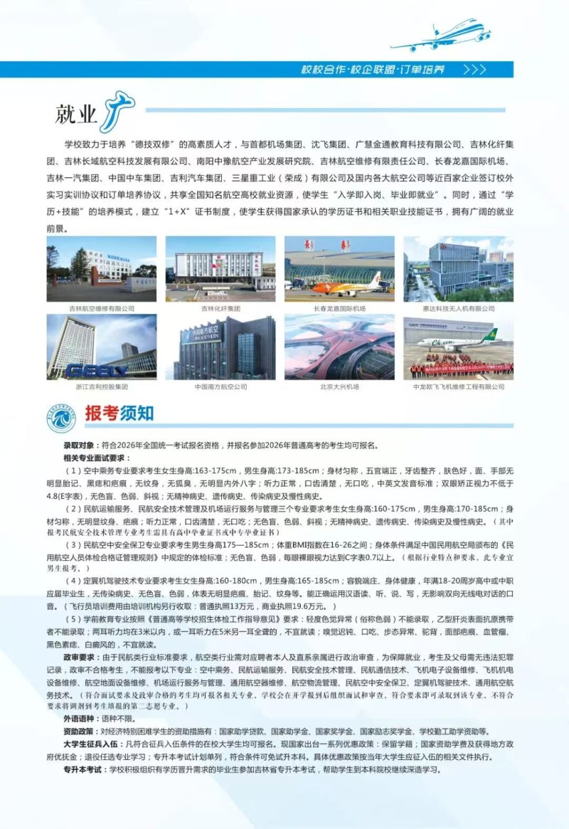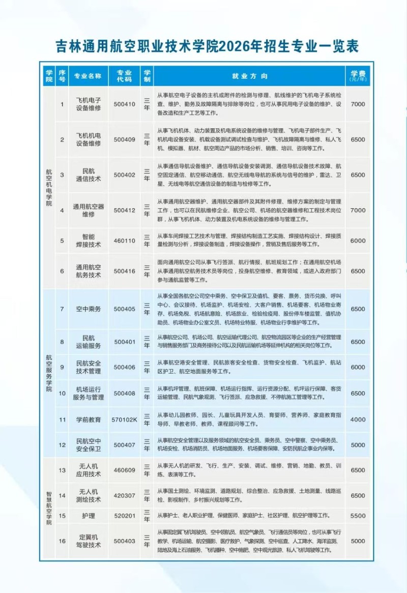 吉航单招|重磅发布:吉林通用航空职业技术学院2026年招生简章