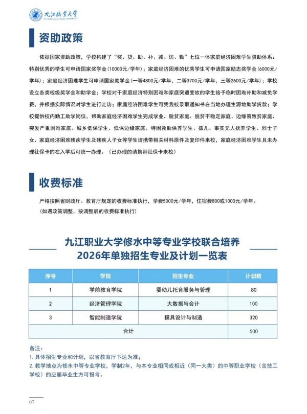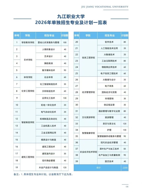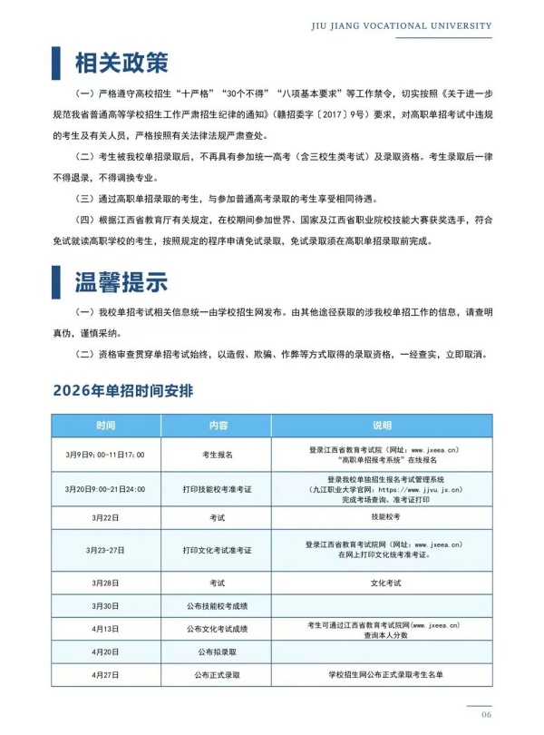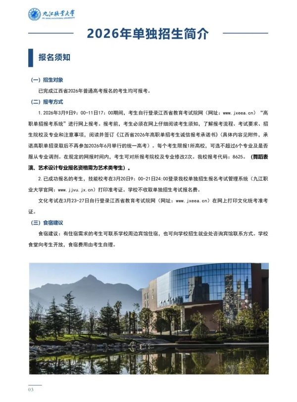 九江职业大学2026年单招报考指南