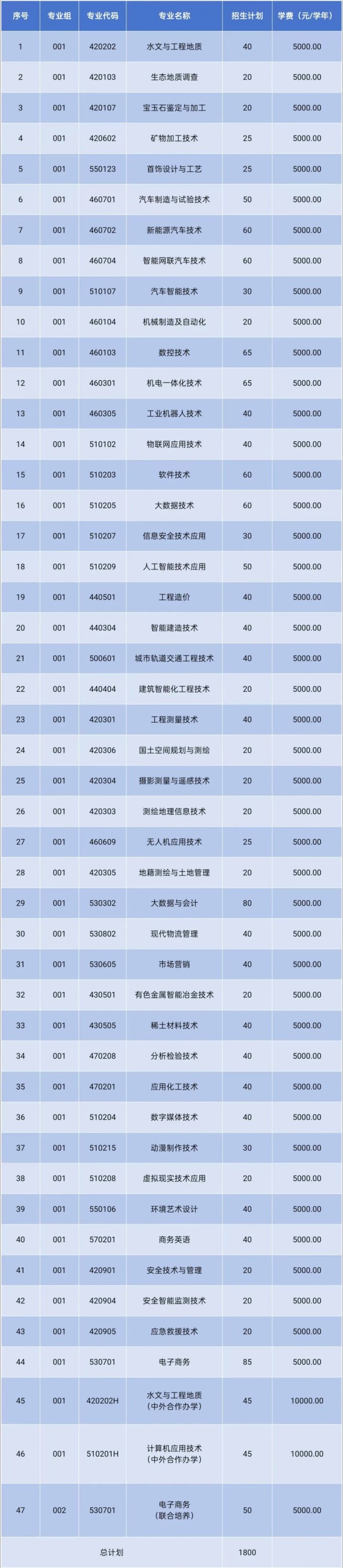 五、招生计划、招生专业、学费标准