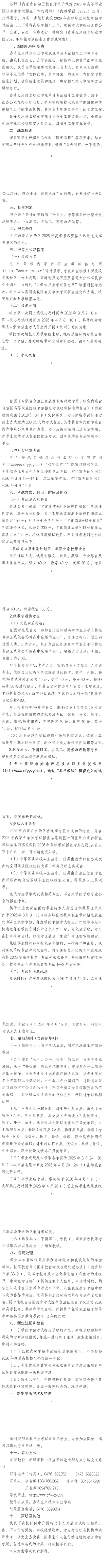 赤峰应用技术职业学院2026年单独考试招生工作实施方案