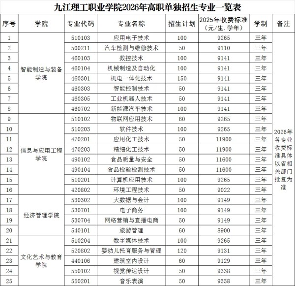九江理工职业学院(报考代码:8687)是2020年4月经江西省人民政府批准设置、教育部备案的非营利性民办高职院校。学校以习近平新时代中国特色社会主义思想为指导,落实立德树人根本任务,秉承“明德 达理 尚学 精工”的校训,弘扬精益求精、追求卓越的工匠精神,着力培养高技能人才,服务区域经济社会发展。