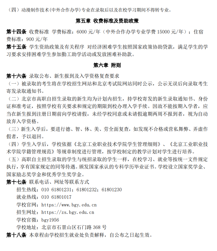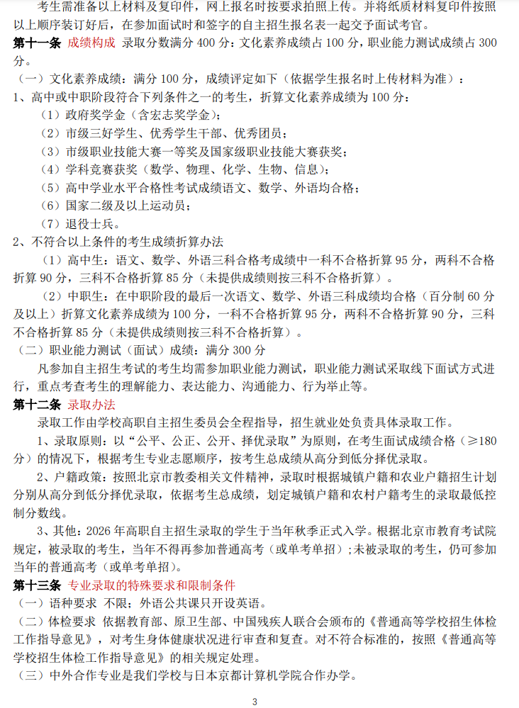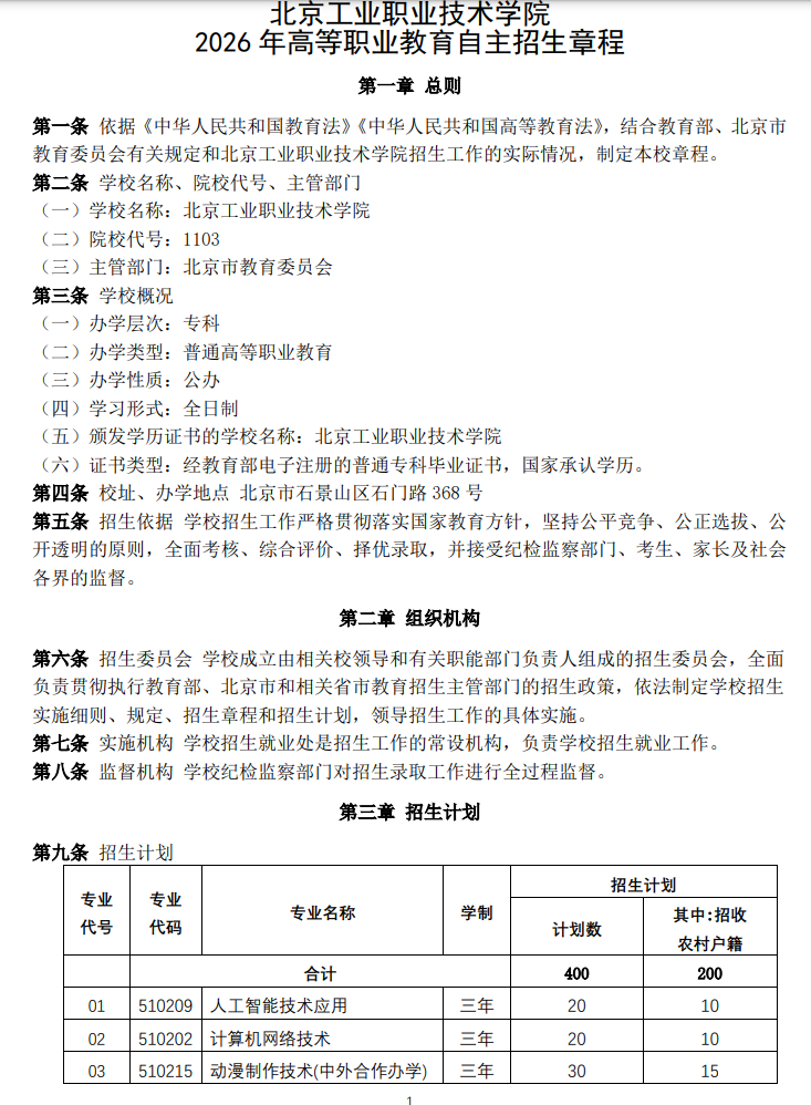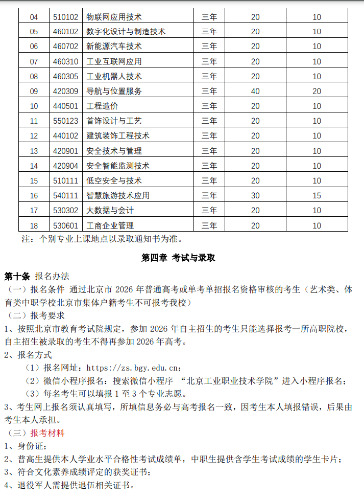北京工业职业技术学院2026 年高等职业教育自主招生章程