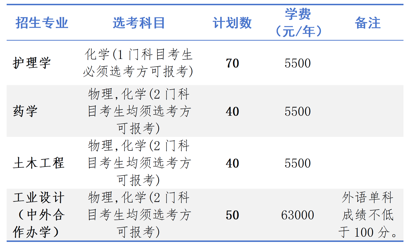 第十五条 工业设计(中外合作办学)专业宜英语语种考生报考,且填报志愿时,考生外语单科成绩须不低于100分。若非英语语种考生报考并被录取,且不能按规定完成学业者,按学校学籍管理有关规定办理。