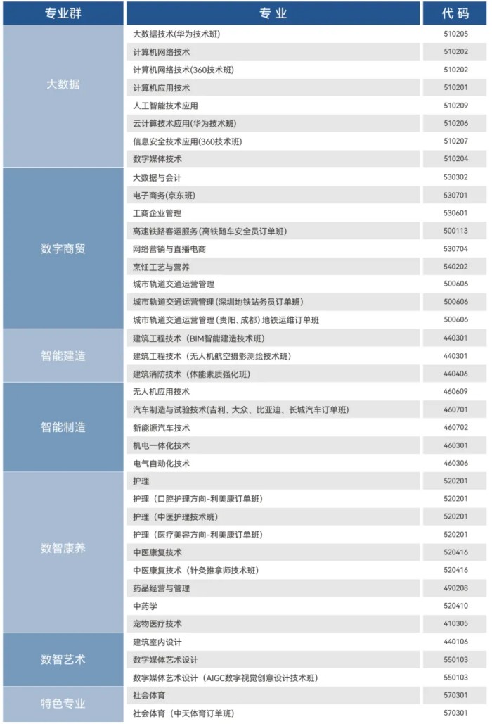 6. 城市轨道交通运营管理(深圳地铁站务员订单班)专业:女生身高160cm及以上、男生身高175cm及以上,五官端正、口齿清楚、无纹身、无残疾。不在此区间内考生可能会影响后期就业,需慎重报考。