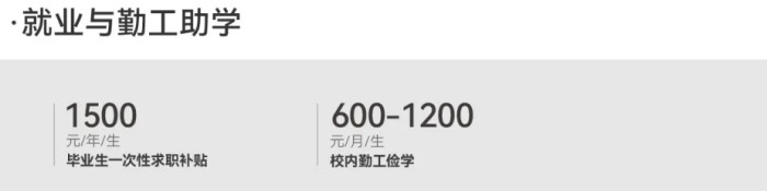 (七)校内勤工助学:贫困学生通过在校内参加勤工俭学获得资助,标准为:600-1200元/月。