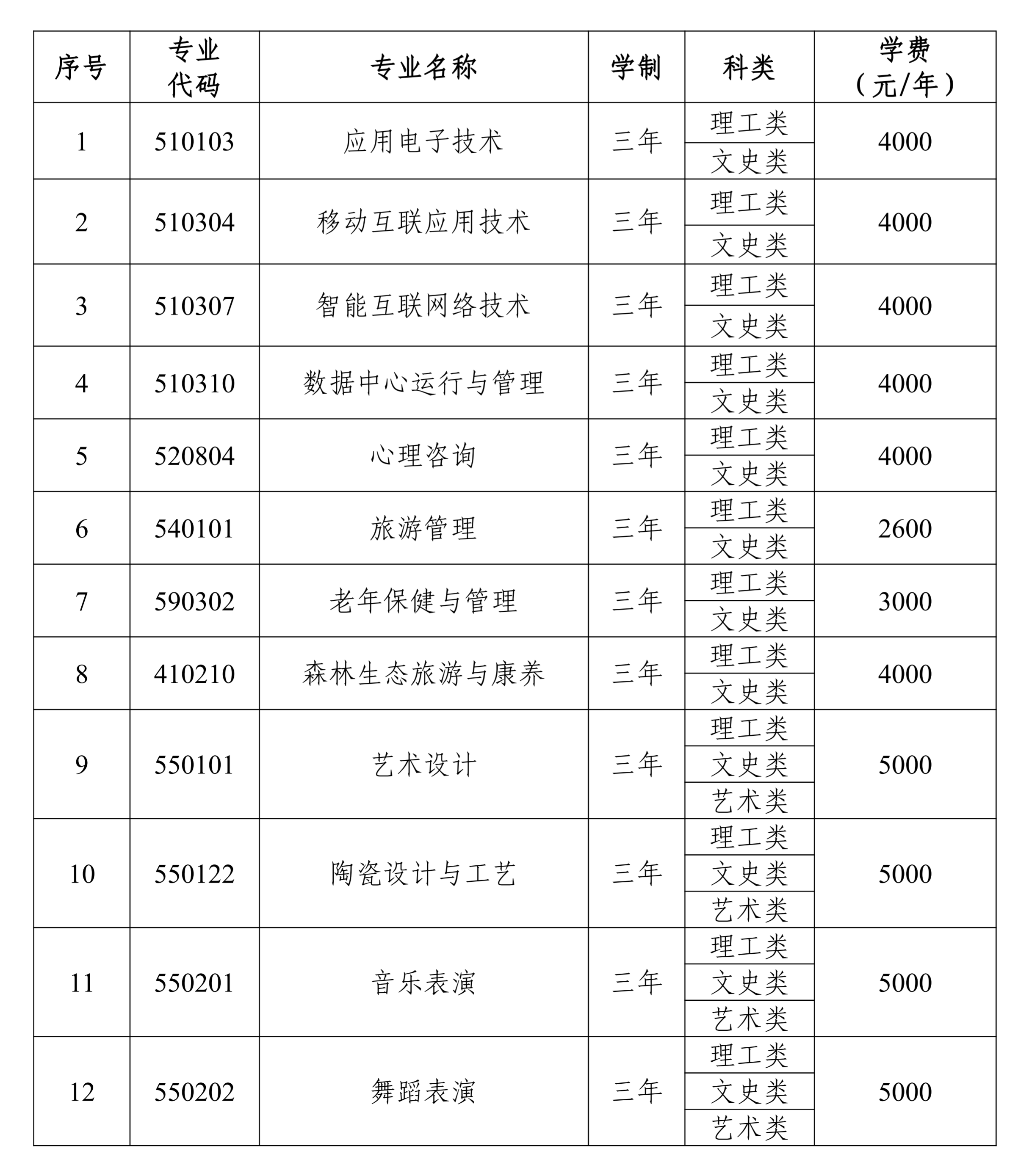 第十四条 学校严格执行山西省发展和改革委员会、山西省财政厅等部门批准或备案的收费标准。各招生专业名称、学制、具体收费标准将随年度招生简章一并公布。2026年单独招生专业及相关信息如下:
