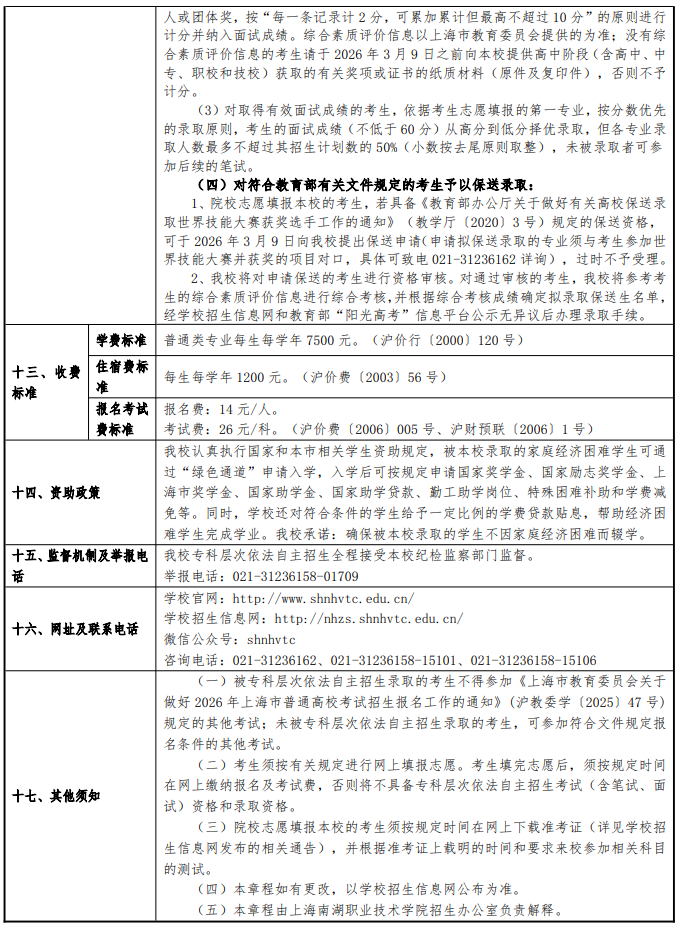 2026年上海南湖职业技术学院专科层次依法自主招生章程