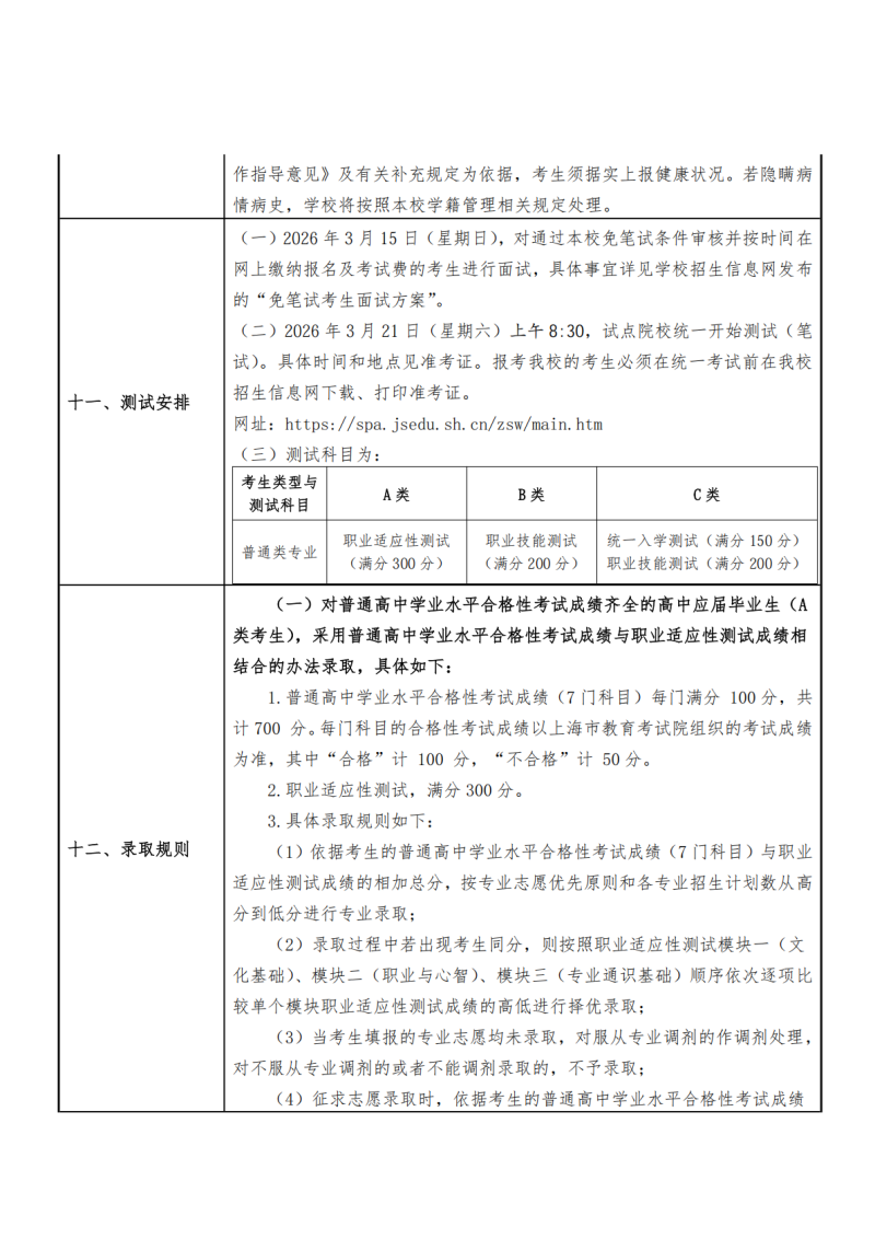 上海现代化工职业学院2026年专科层次依法自主招生章程