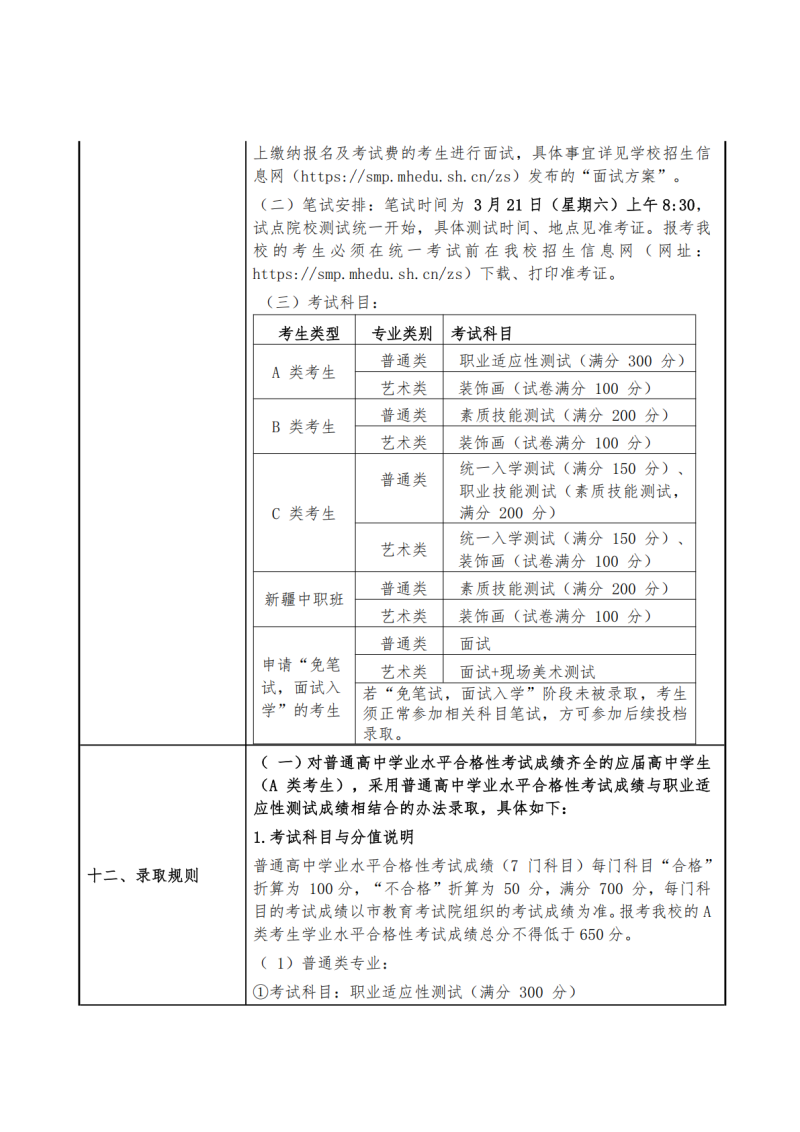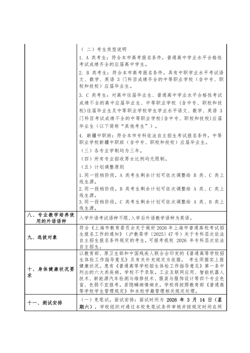 上海闵行职业技术学院2026年专科层次依法自主招生章程