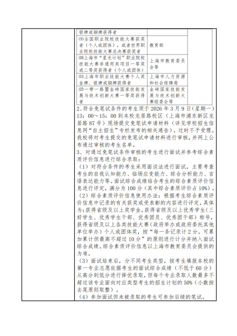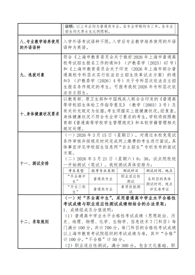 上海浦东职业技术学院2026年专科层次依法自主招生章程
