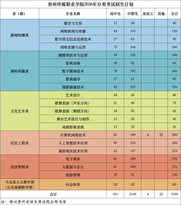 第六条 招生计划详见省招生考试院公布的贵州省2026年高职(专科)分类考试招生专业目录。