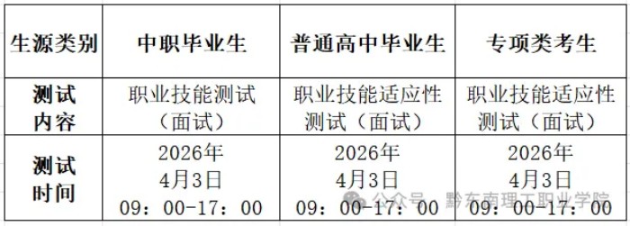 (1)填报黔东南理工职业学院普通类专业(非艺术类)的考生,需参加黔东南理工职业学院组织的普通类专业职业技能适应性测试(职业技能测试)。