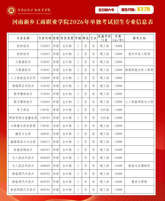 严格按照河南省教育厅核批的招生计划执行。2026年单独招生专业如下表所示,分专业招生计划由学校根据专业培养能力自主确定,最终以河南省教育厅核定公布为准。考生可通过学校官网(http://www.hnxxgs.edu.cn)及河南省教育考试院网站查询详细招生计划。